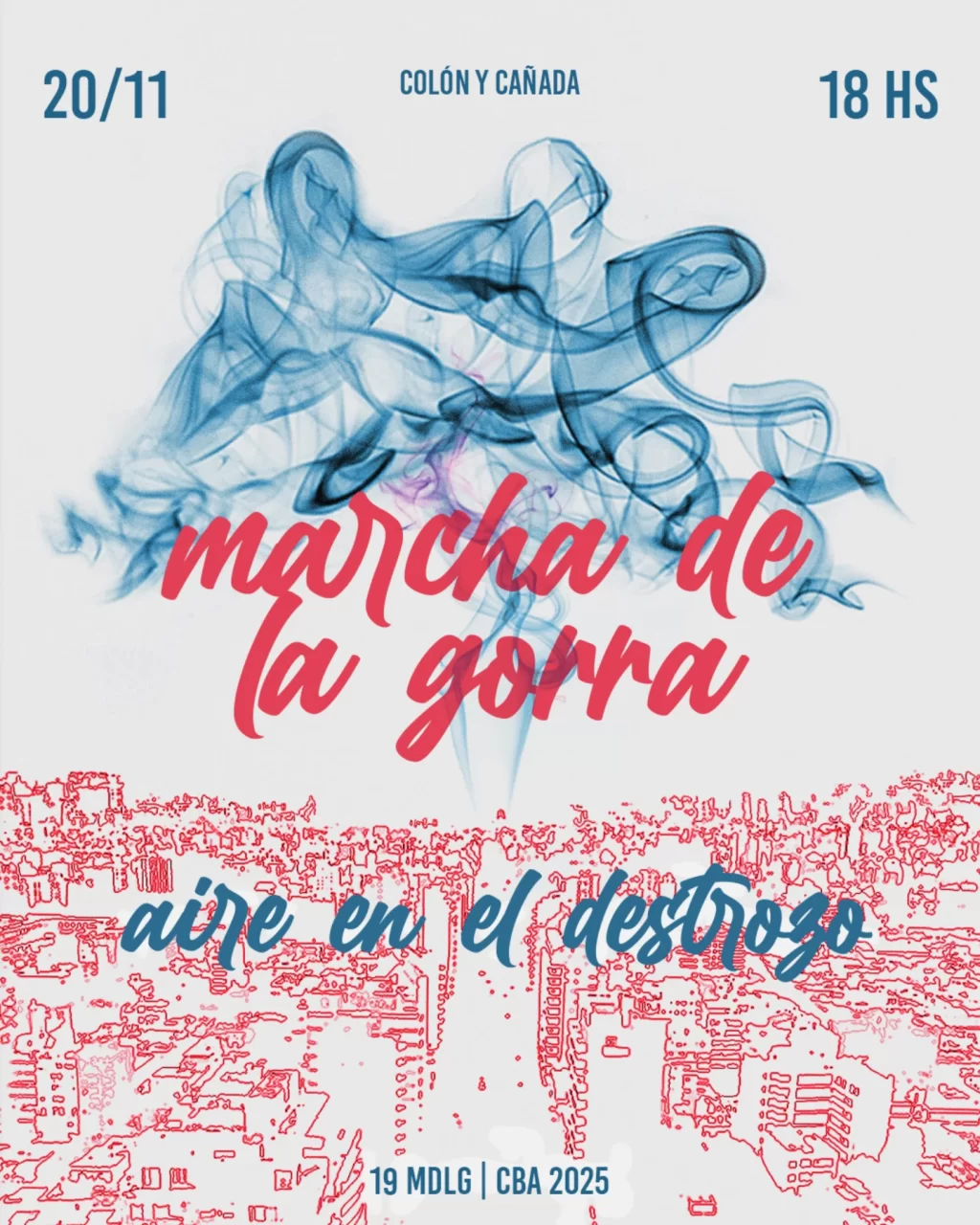 Jueves 20 • 19 MDLG • Colón y Cañada • 18 hs. Somos la Marcha de la Gorra, somos aire en el destrozo. Hace 19 años que conspiramos contra lxs[…] Read more